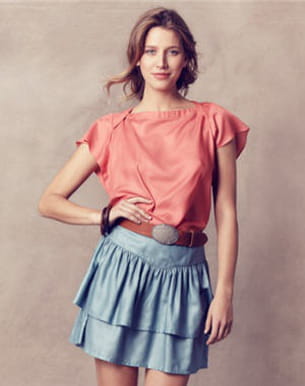 Tout en douceur et légèreté, cette jupette volantée de Lola nous habille avec chic. On aime son coloris clair et sa coupe courte qui mettront en valeur nos jolies gambettes bronzées cet été. Collection printemps-été 2012