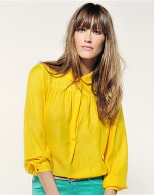 Voilà de quoi mettre un peu de soleil dans notre garde-robe avec cette blouse jaune signée Camaïeu. En plus de son coloris original et tendance, on aime aussi son coupe ample et fluide et son adorable col Claudine bien sûr. Collection printemps-été 2012