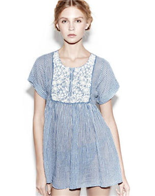 Antik Batik nous propose toujours du chic et de l'originalité et le prouve une fois de plus avec cette blouse en mode Vichy. Et puisque tous les détails comptent et font même toute la différence, on remarque aussi le plastron brodé de fils et de perles pour la note d'élégance en plus. Collection printemps-été 2012