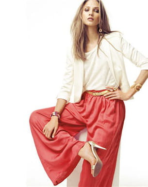 Le pantalon se féminise avec cette forme ample. Aérien et coloré, il flirte avec la jupe longue pour un résultat des plus élégants. On le mise à une veste ou un joli top pour une allure parfaite.