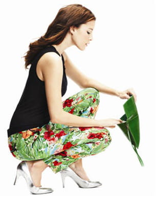 Cette saison, impossible d'échapper à la tendance pantalon bariolé. Pour toutes les aventurières mode, on ose ce modèle à l'imprimé " tropical " signé Kookaï. Pour le reste, on joue la carte du minimalisme avec un top léger neutre et de simples escarpins ou une paire de sandales.