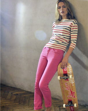 Les nouvelles collections débarquent ! C'est donc le moment de s'offrir le jean de la saison : le denim de couleur. On le choisit rose pour un look girly à souhait. Et pour être encore plus tendance, on opte pour des petites ballerines ou des derbies. Collection printemps-été 2012