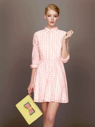 Cette après-midi, direction le salon de thé entre copines pour se détendre et partager les derniers potins. Côté look, à l'heure des premiers rayons de soleil, on opte pour une petite robe resserrée à la ceinture. A la rédaction, on craque sur ce modèle rose, Asos, au col serré et au motif pois parfait pour un look léger et printanier qui vous donnera ce petit côté lady que l'on aime tant.
