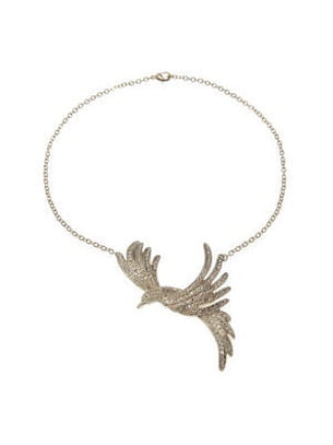 Pour accessoiriser votre tenue, on ajoute à la robe bustier Les Petites... ce magnifique collier en forme d'oiseau du paradis incrusté. Un style ras-du-cou très en vogue qui vous donnera des ailes devant les objectifs des paparazzi.