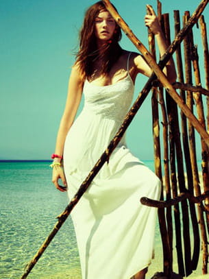 Robe blanche longue en crochet de Stradivarius © SdP Stradivarius