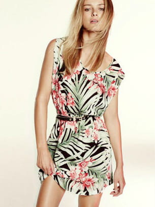 Robe imprimée feuilles et hibiscus de Mango © SdP Mango