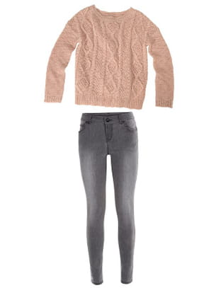 Un look tout doux avec un jean de New Look et un pull de Monoprix © SdP New Look / Monoprix