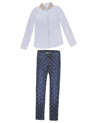 Un look strassé avec un jean de Bershka et une chemise de 1.2.3 © SdP Bershka / 1.2.3