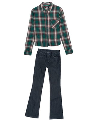 Un look scottish avec un jean de Bonobo et une chemise de Jennyfer © SdP Bonobo / Jennyfer