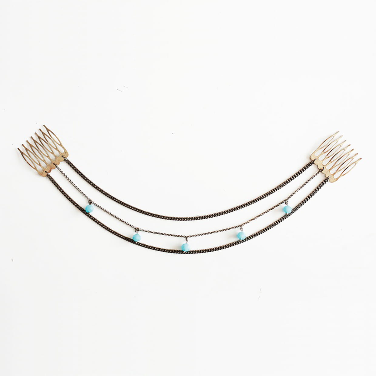 Ce double-peigne est entièrement réalisé par la jeune créatrice parisienne dans son atelier. Acheter ce bijoux de cheveux dans notre boutique en ligne (prix : 70 euros, frais de ports offerts). Et aussi : L'interview de Louise Damas et son look book