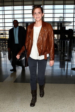 Qu'elle est mimi la (plus si) petite Hermione de la saga Harry Potter. On lui piquerait bien ce petit Perfecto marron. Mais bon, un coup de baguette magique ça ne devrait pas suffire pour exaucer notre souhait.