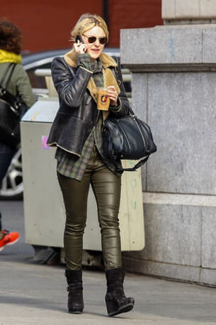 La jeune actrice américaine adopte le bombardier pour ne pas avoir froid dans les rues de New York. Pas besoin de faire la grimace : certes le coloris de son pantalon nous laisse sceptique mais le blouson a un vrai potentiel et n'attend que nous pour prendre son envol (si,si).