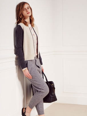 Cardigan "Bottin", chemise "Paper Blossom", pantalon "Jadis", sac "Cabin", sandales "Picadilly" © SdP Laurence Doligé