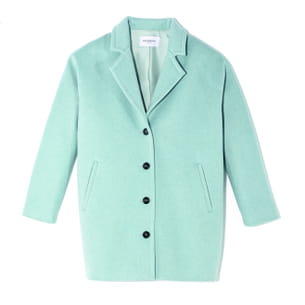 Le manteau boule est un must-have cette saison. On est fan de sa tonalité bleu pastel.