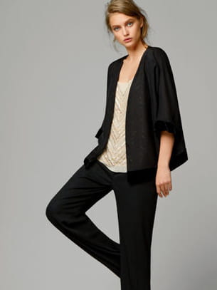 Veste kimono, top brodé et pantalon noir de Massimo Dutti © SdP Massimo Dutti