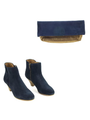Boots bleu marine et pochette bleu marine et dorée de Sessùn © SdP Sessùn