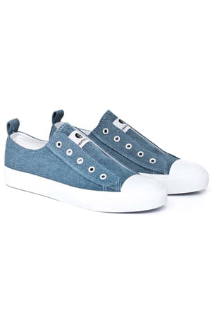 Tennis bleues sans lacet effet denim de Cheap monday
