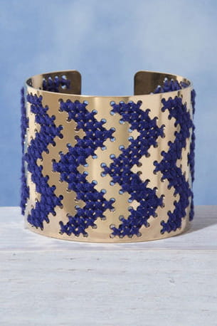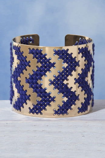 Manchette brodée de fil bleu gitane de Camille Enrico