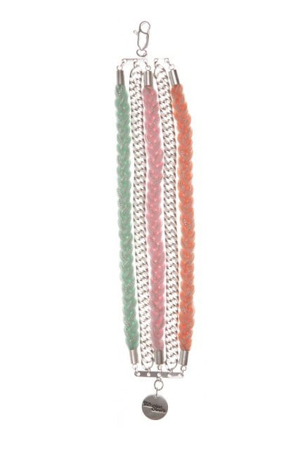 Bracelet argenté cinq rangs avec chaînes et tresses de Mr Simone