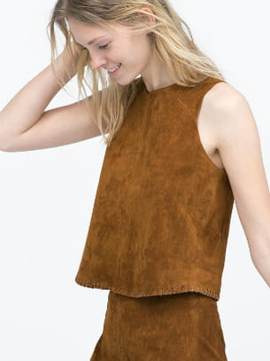 Haut court sans manches en daim camel de Zara