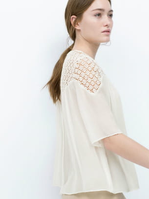 T-shirt écru ajouré en haut à manches courtes de Zara