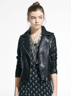 Veste perf' noire effet cuir de Mango