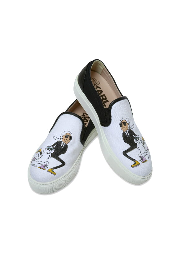 Slip-on blanches et noires de Tiffany Cooper pour Karl Lagerfeld © SdP Karl Lagerfeld