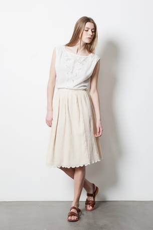 Jupe romantique mi-longue en tissu gaze et broderies de Antik Batik