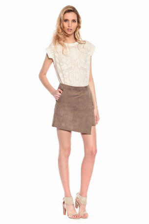Jupe en cuir de chèvre couleur tilleul de Berenice