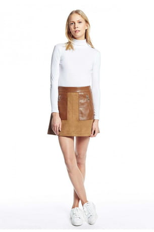 Jupe en daim camel avec empiècements en cuir lisse de Claudie Pierlot