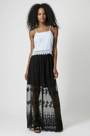 Maxi jupe avec finitions transparentes en crochet et doublure de Topshop