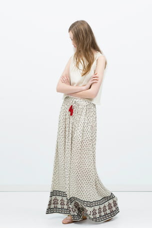 Maxi jupe avec taille élastique décorée de cordons avec pompons de Zara