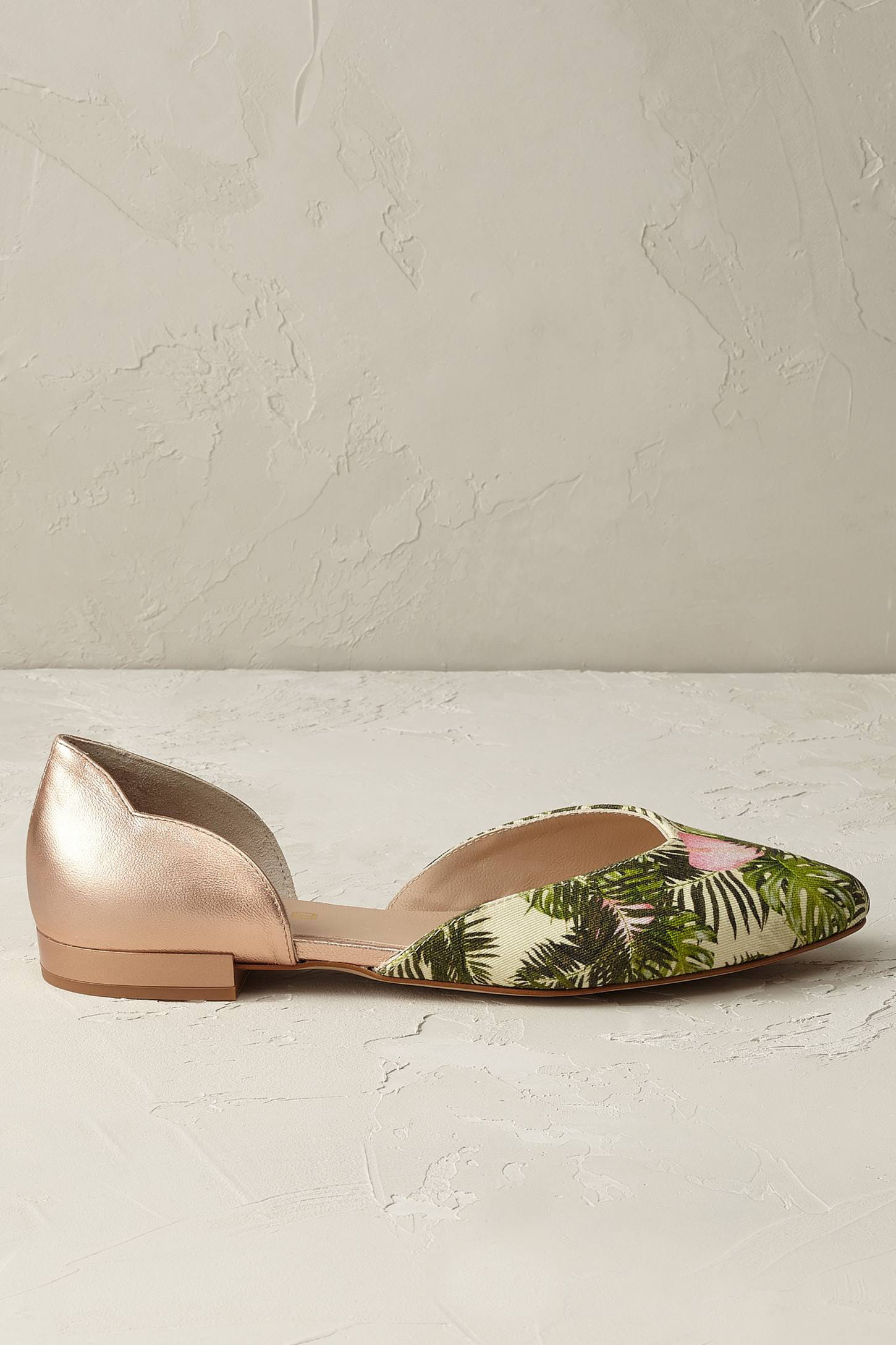 Ballerines échancrées à motif tropical et talon doré de Cleo B