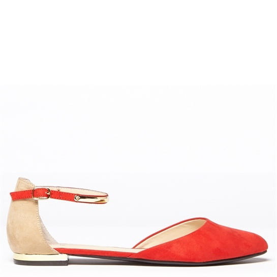 Ballerines pointues nude et rouges avec bride à la cheville de Pimkie