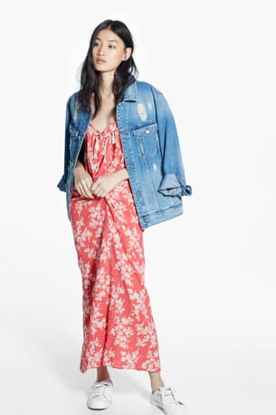 Longue robe en coton à l'imprimé floral géranium rose de Mango