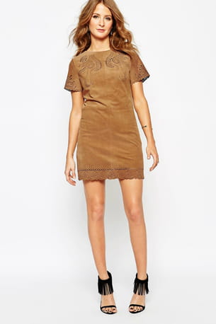 Robe courte couleur camel avec découpes de Millie Mackintosh