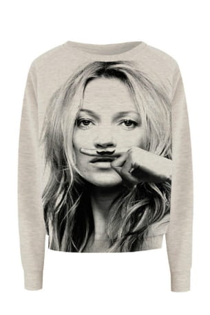 Sweat en molleton gris imprimé Kate Moss à moustache de Eleven Paris