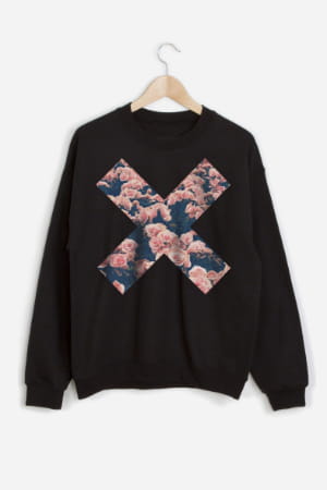 Sweat en molleton noir à motif croix à fleurs de WTF pour Rad