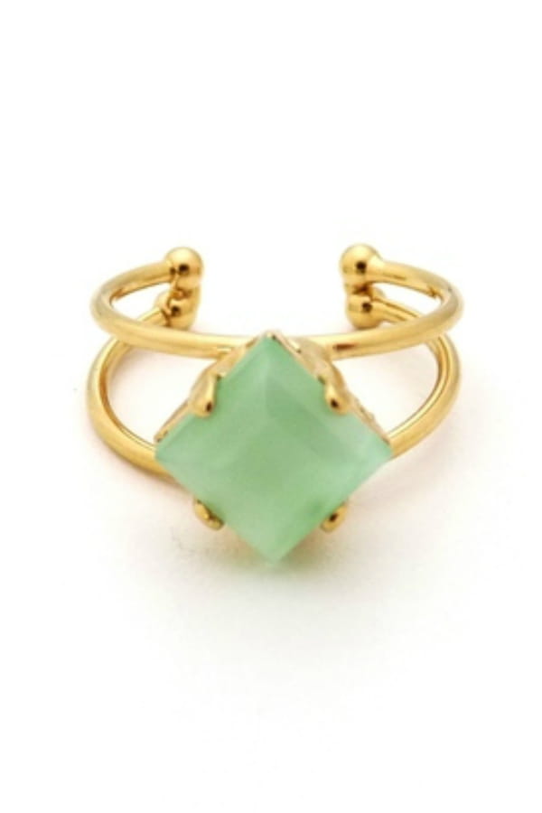 Bague fantaisie esprit rétro dorée à l'or fin 24 carats avec cabochon en verre vert d'eau et réglable de Anaozi