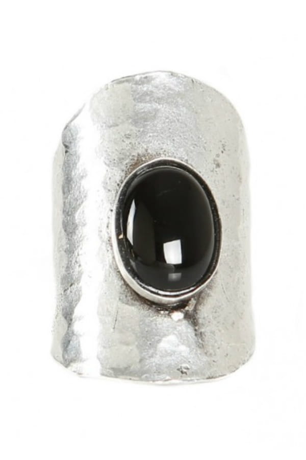 Bague fantaisie en métal avec cabochon en agathe noir de Helles