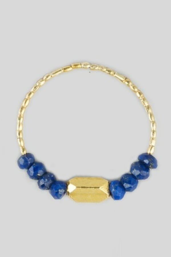 Bague chaîne fantaisie plaquée or avec perles en lapis lazuli de St1 Leonor Mataillet