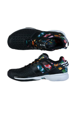 Baskets techniques de tennis noires et motifs fleurs de la collection Roland Garros de Adidas