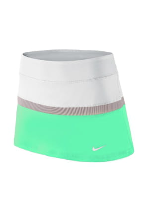 Mini jupe de tennis tricolore blanche, grise et vert menthe de Nike sur Tennisachat.com