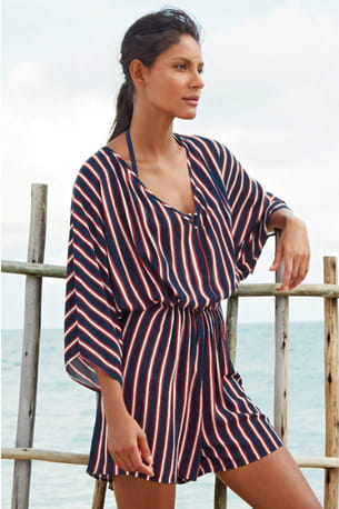 Combi-short bleu à rayures rouges et blanches et manches chauve-souris de Next
