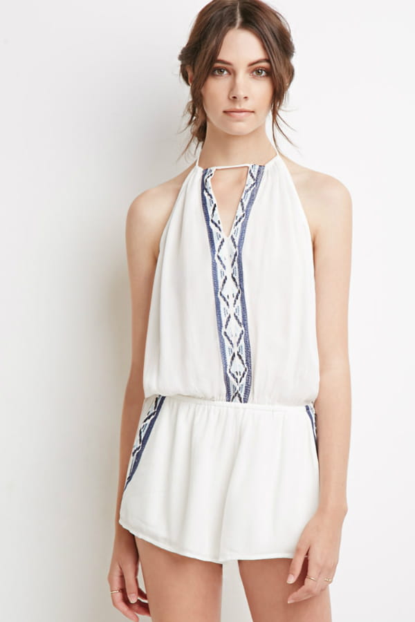 Combi-short en crêpe froissé avec broderies sur le buste et sur les côtés de Forever 21