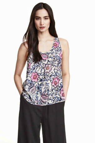 Blouse sans manches avec fentes sur les côtés et motif floral pastel de H&M