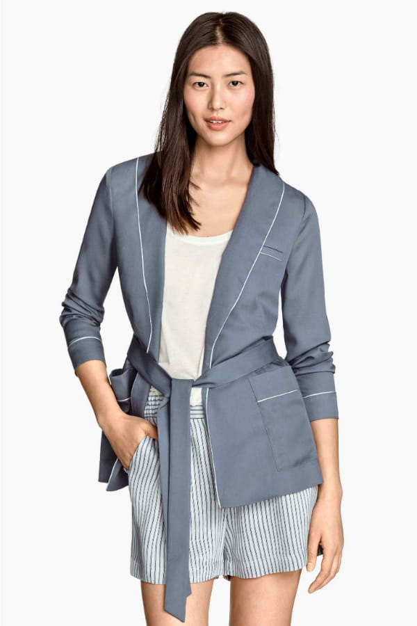 Blazer tissé en lyocell bleu avec bordures contrastantes de H&M Conscious