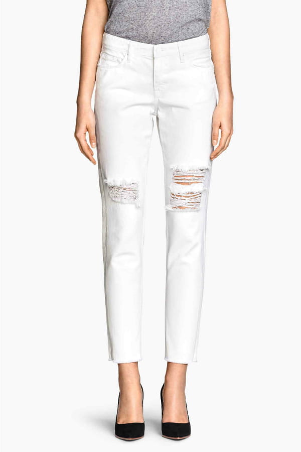 Jean blanc coupe girlfriend avec détails déchirés de H&M