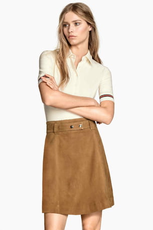 Jupe en daim de qualité premium avec ceinture pressionnée de H&M