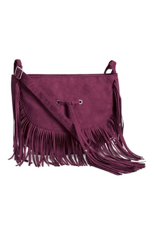 Sac bandoulière couleur prune avec de longues franges sur le devant de H&M